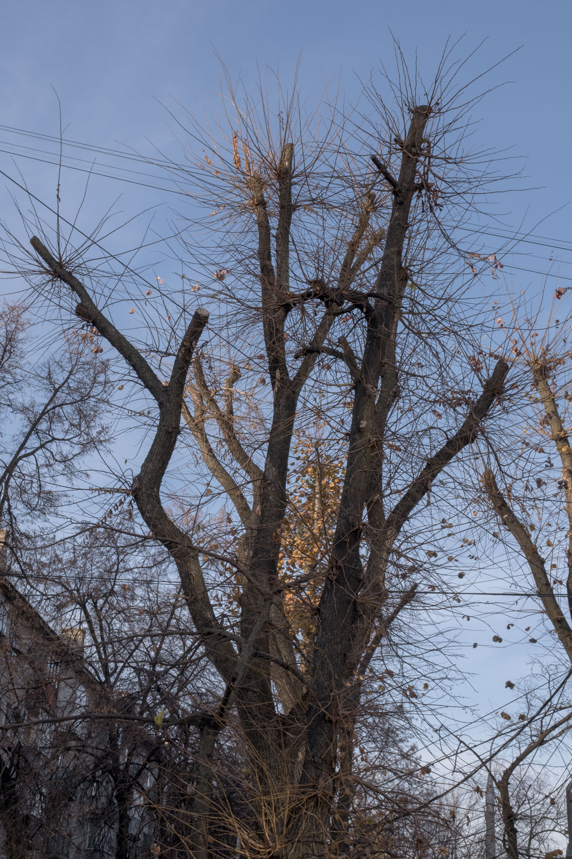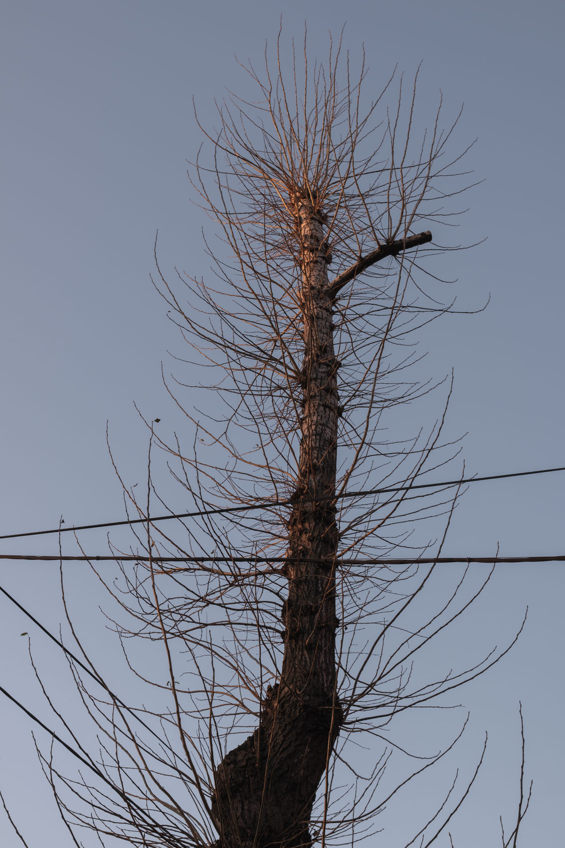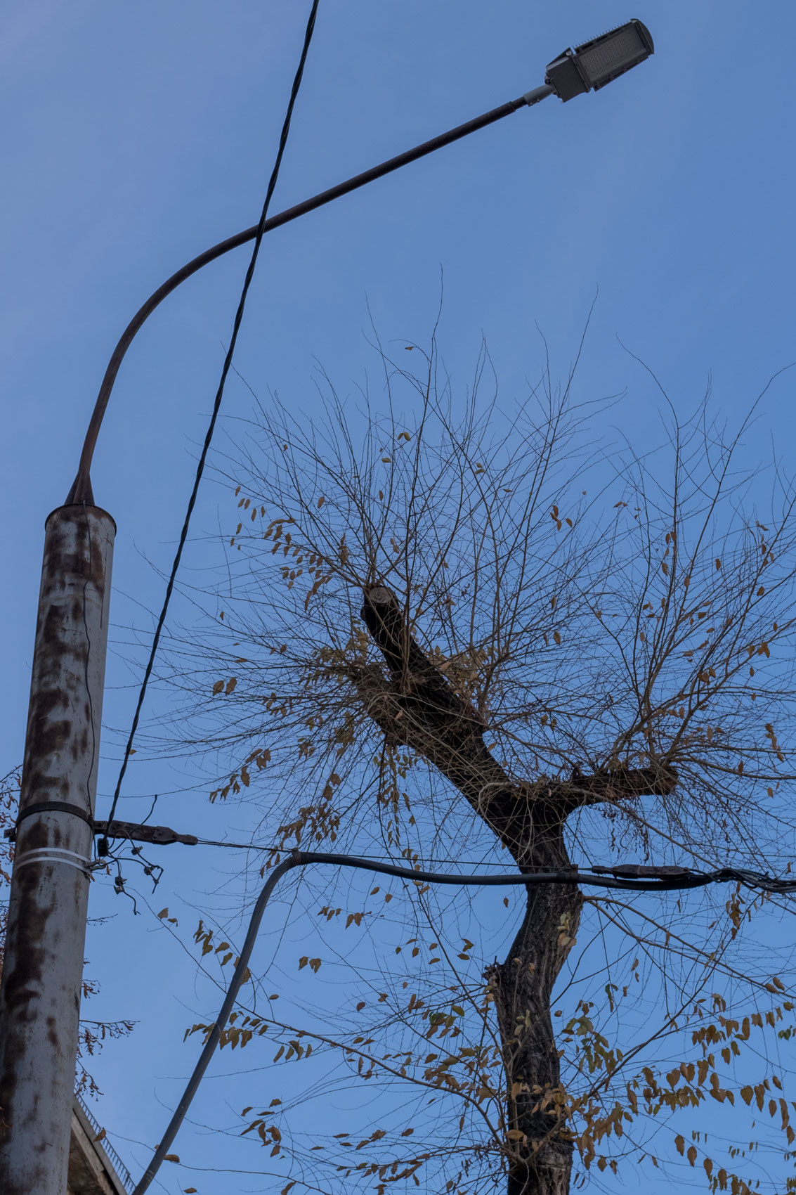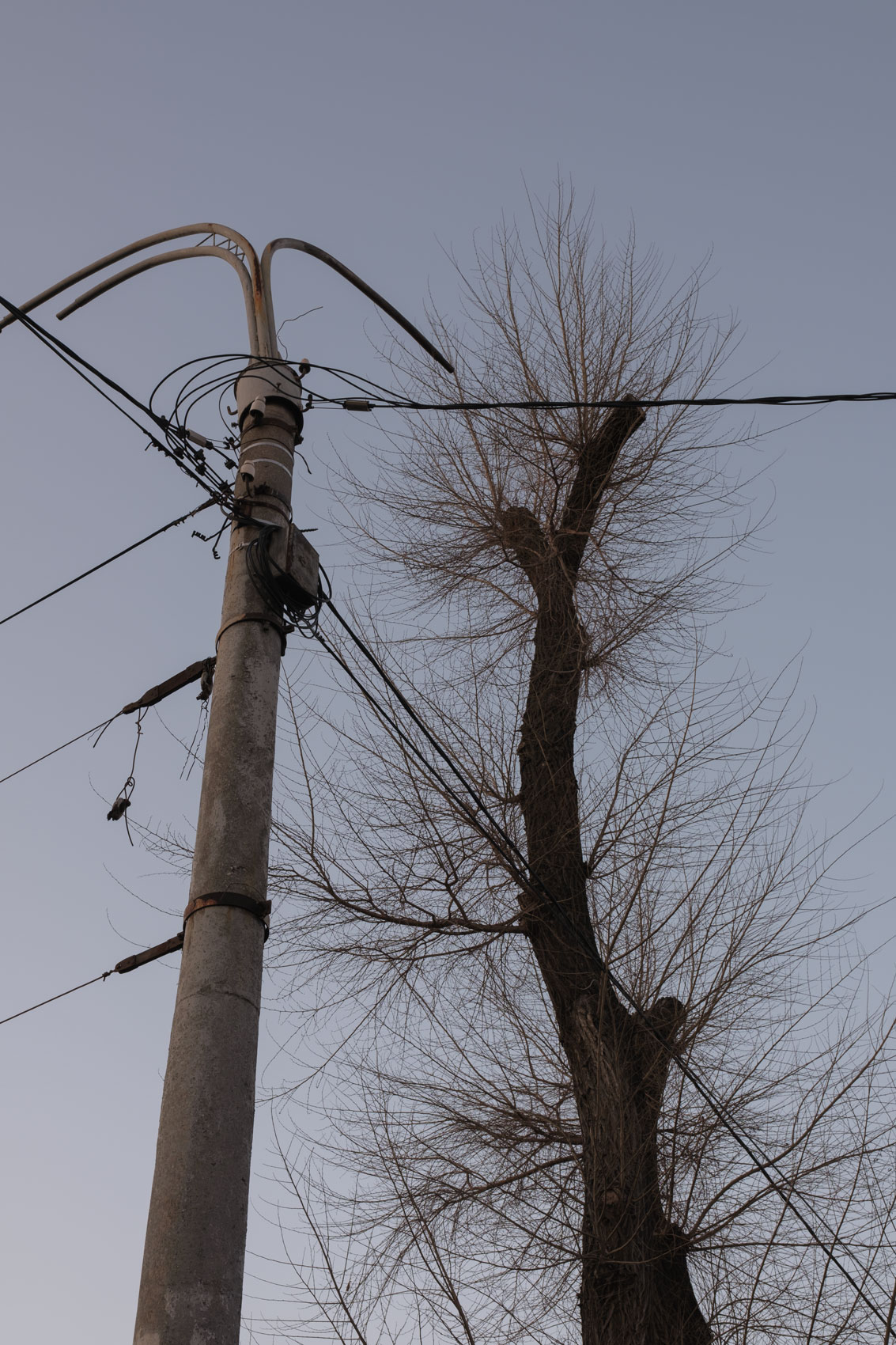 В этой серии я соотношу людей с деревьями. Деревья эти обрезаны, достаточно грубо, потому что они мешают городу, его инфрасткуре. Хотя посадили их именно здесь, тут они и выросли, как будто им не дают возможности показать всю свою красоту, но они несмотря на все провода и преграды находят новые пути и тянутся к солнцу.