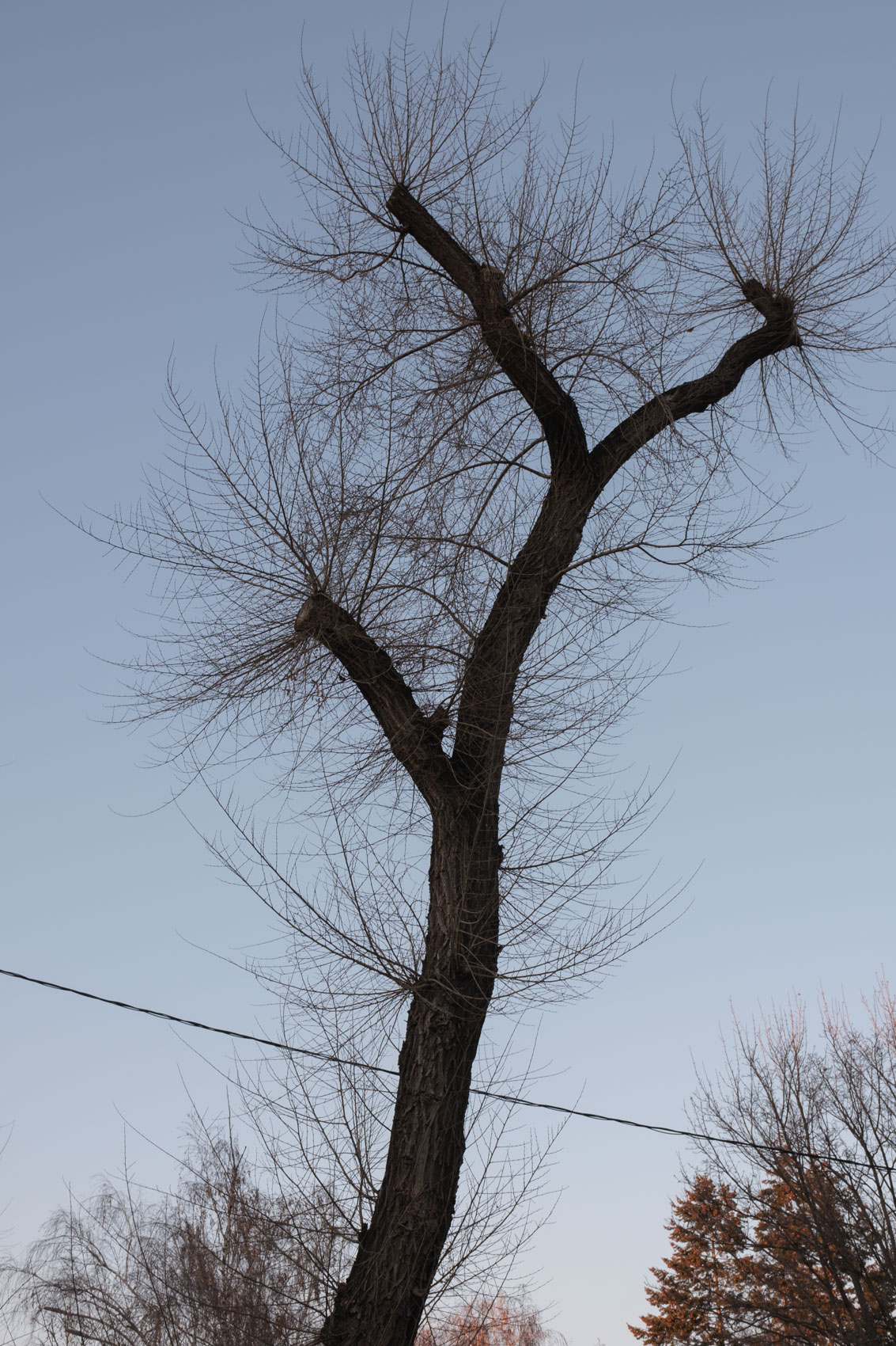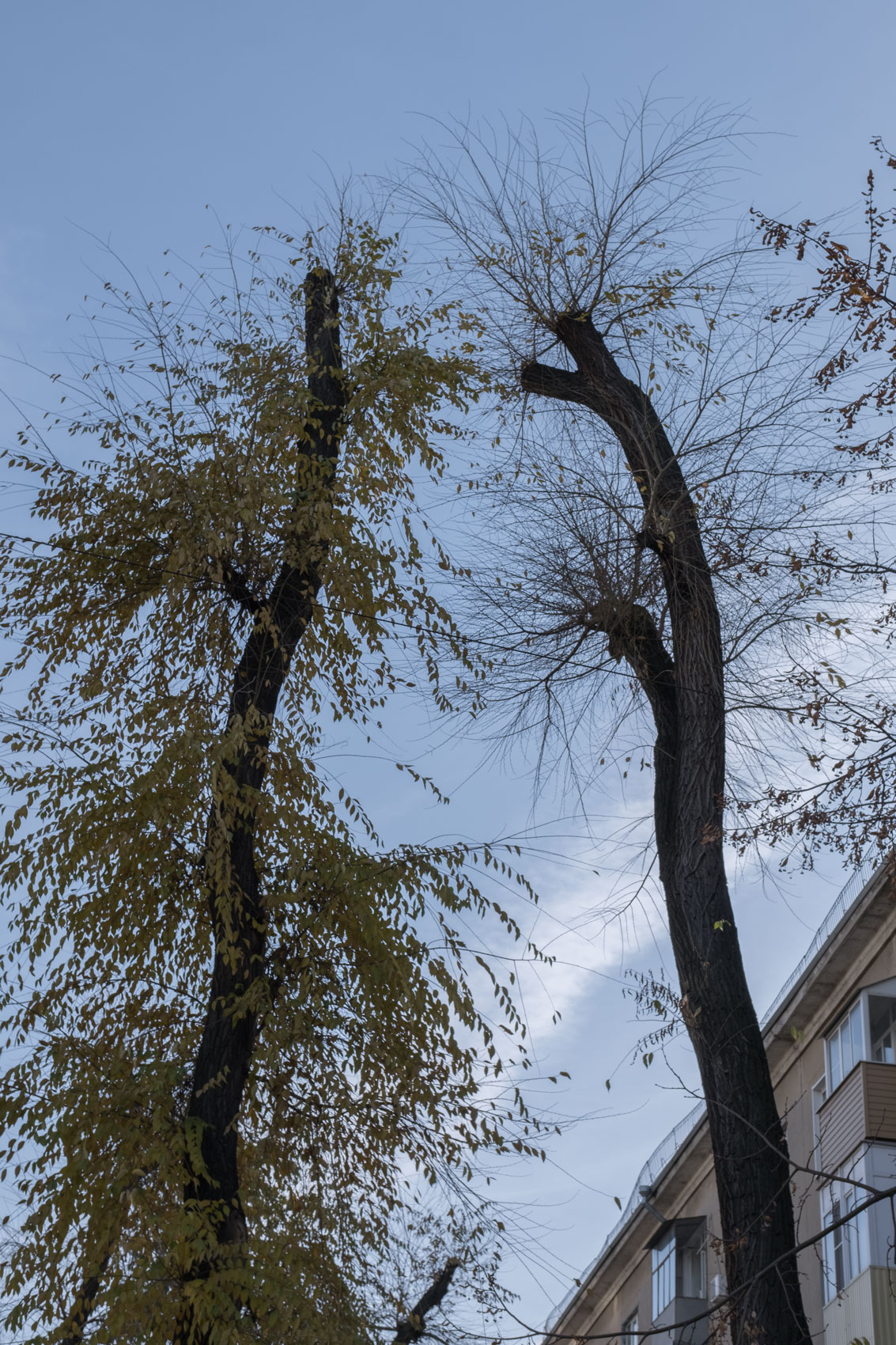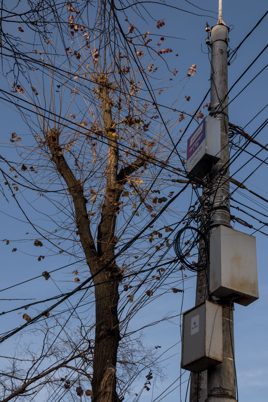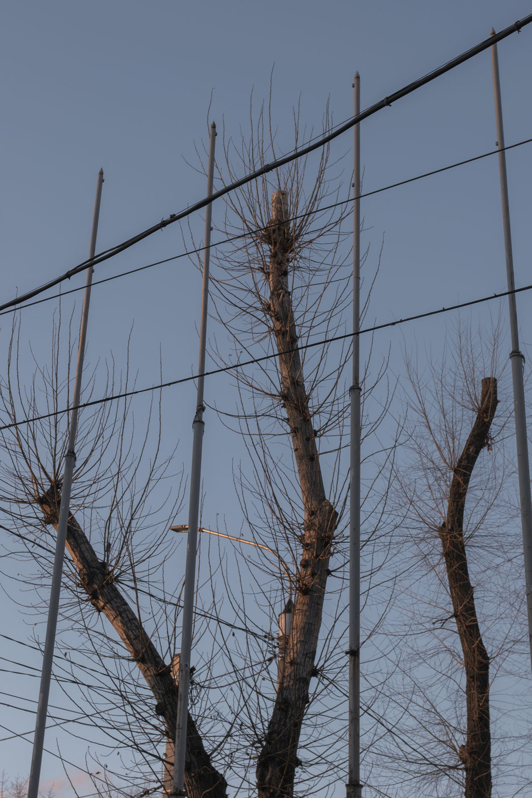 В этой серии я соотношу людей с деревьями. Деревья эти обрезаны, достаточно грубо, потому что они мешают городу, его инфрасткуре. Хотя посадили их именно здесь, тут они и выросли, как будто им не дают возможности показать всю свою красоту, но они несмотря на все провода и преграды находят новые пути и тянутся к солнцу.